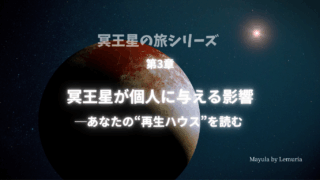個人と冥王星 第3章:冥王星が個人に与える影響 ― あなたの“再生ハウス”を読む 冥王星があなたのどのハウスを通過しているかで、再生のテーマは大きく変わります。魂がどこで生まれ変わろうとしているのか、その“再生ハウス”を読み解きます。 2025.11.06 個人と冥王星冥王星の旅シリーズ